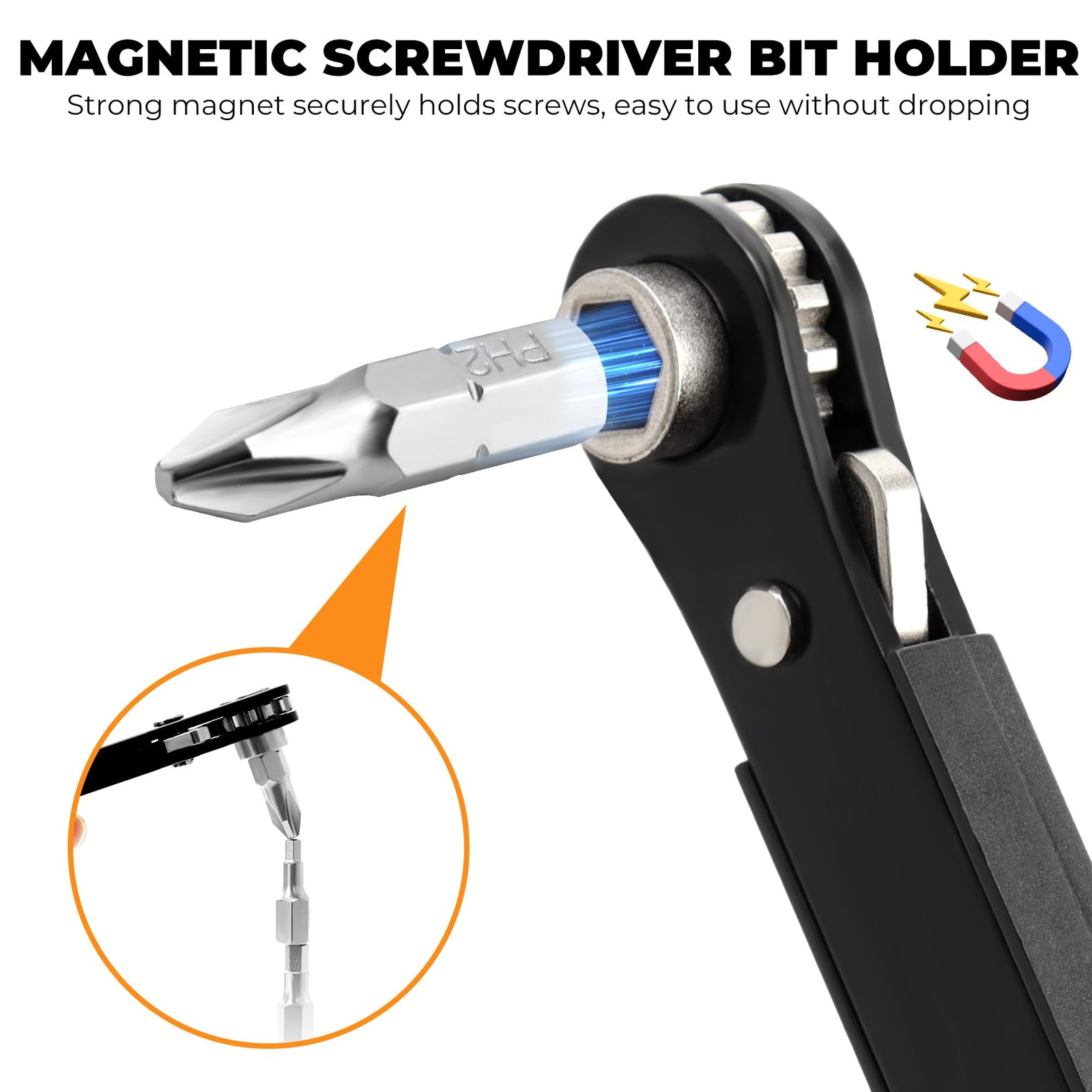 - Efficient Ratchet System: This ratchet screwdriver features a 16-teeth reversible ratchet system for smooth adjustments. The pocket-sized offset screwdriver has a magnetic clip to keep bits secure, making it a key part of this mini ratchet set—ideal for EDC use in home repairs, auto maintenance, and appliance fixing