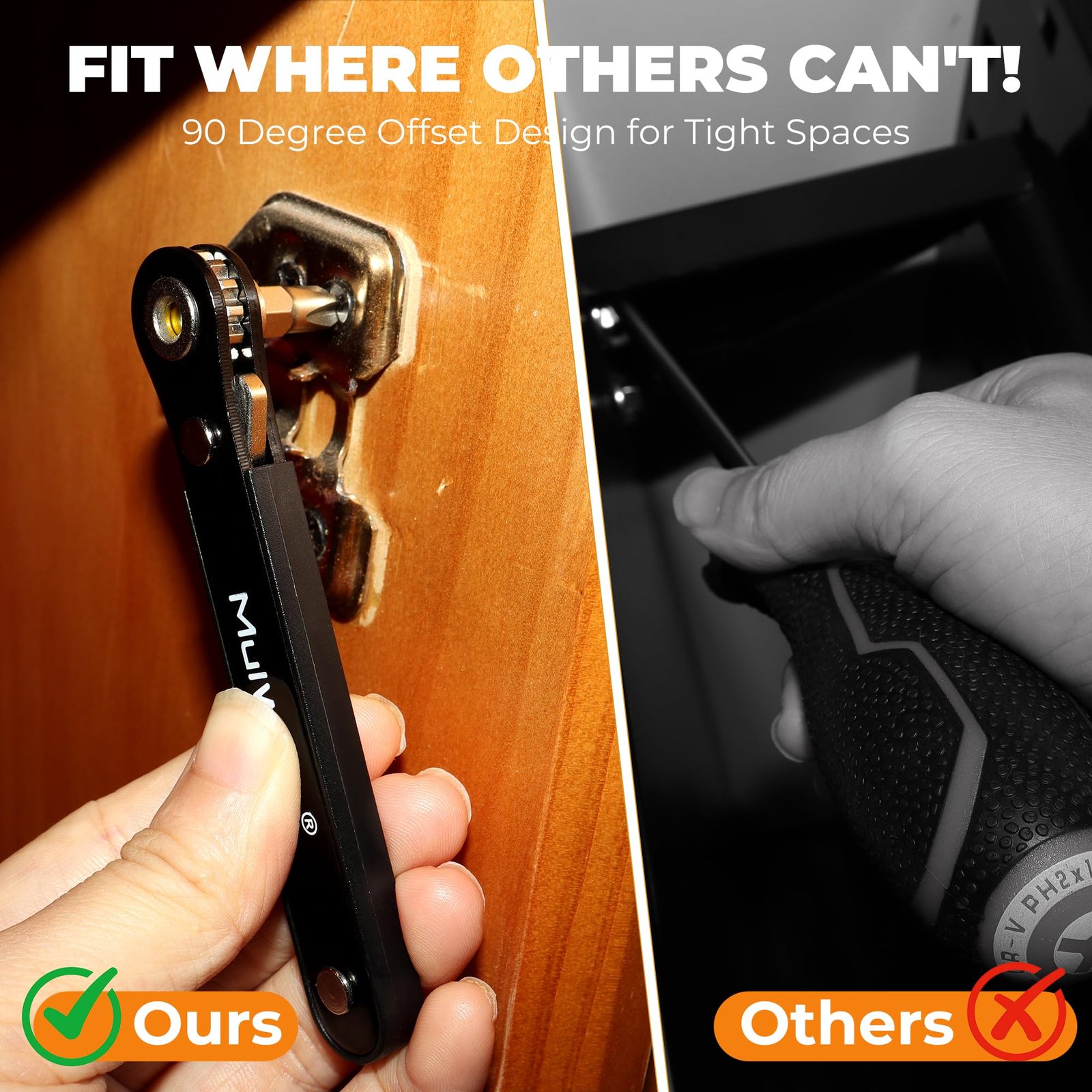 - Replaces Bulky Toolboxes: This small ratchet set is a versatile alternative to large toolboxes. The right angle screwdriver excels in tasks such as appliance repair, furniture assembly, and garage projects, handling various tight-fit jobs with ease without the need for excessive tools