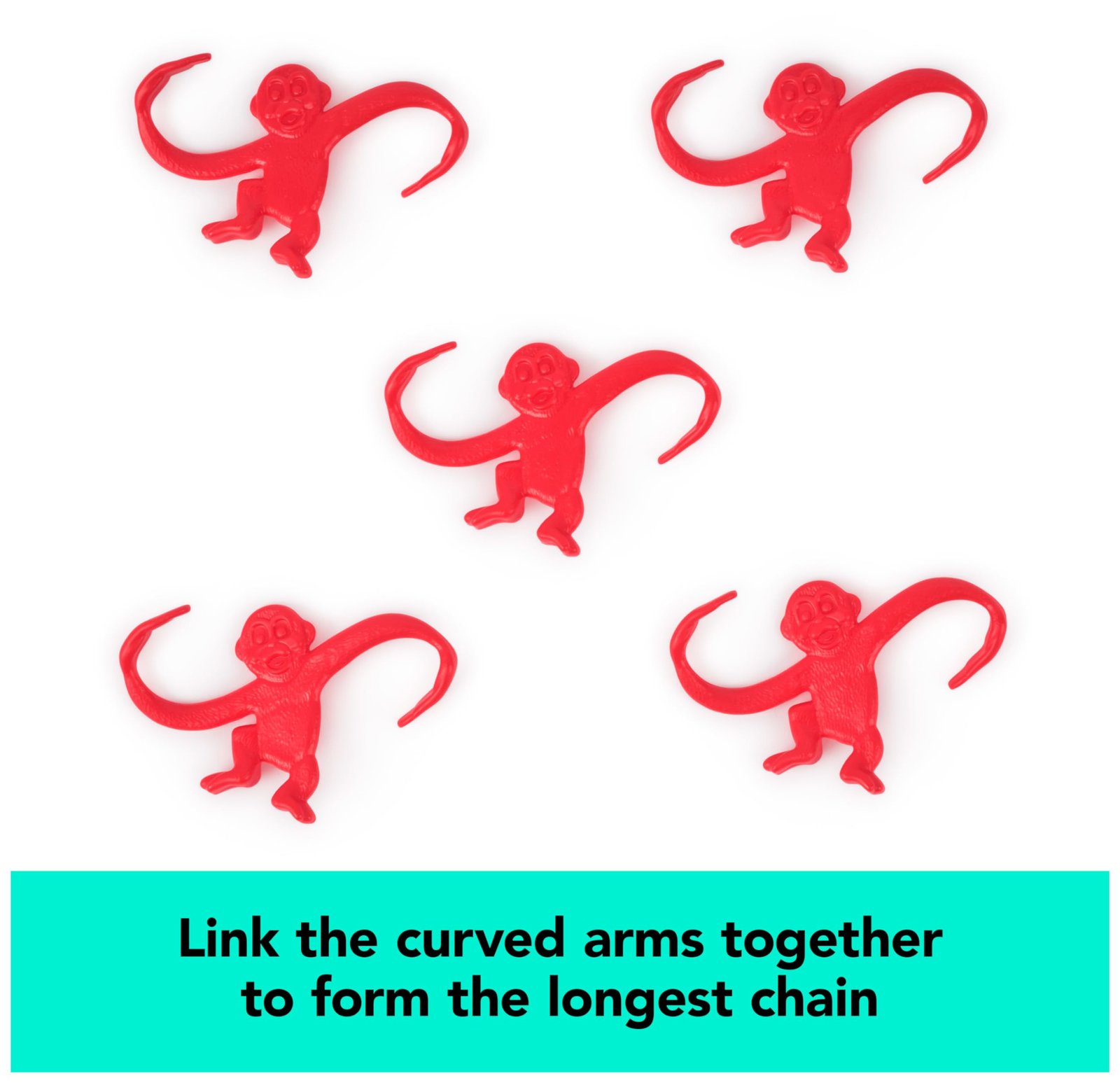 • As Fun As A Barrel Of Monkeys: Pour out the barrel and link the curved arms together to try to form the longest chain of monkeys. Whoever collects the most monkeys in one turn, wins